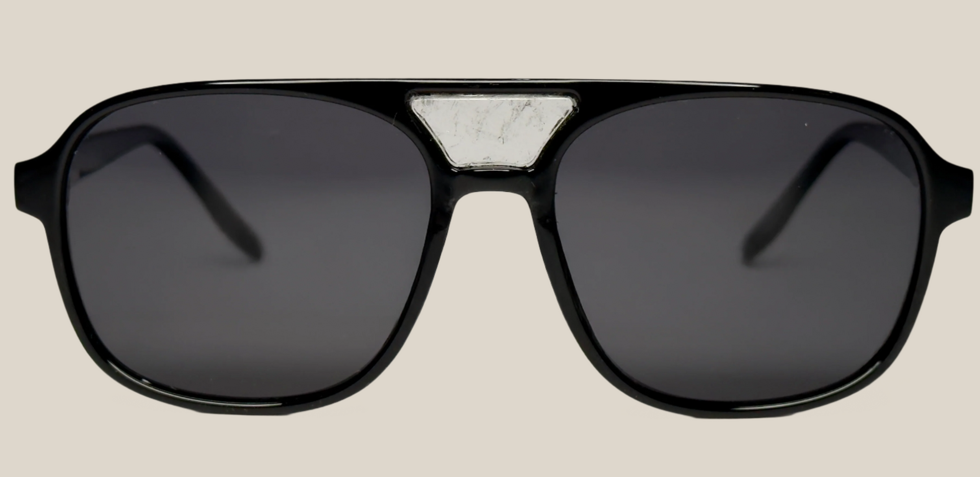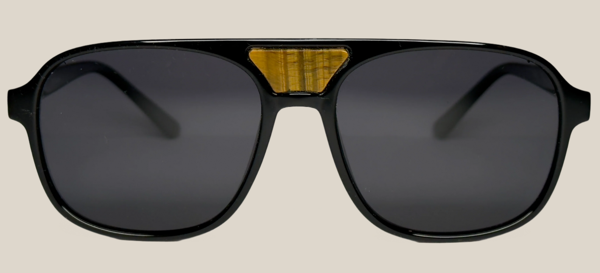 The "Karma" frames are nested with unique natural crystals. Black frames with Polarized sunglass lenses. Size: 54-16-145