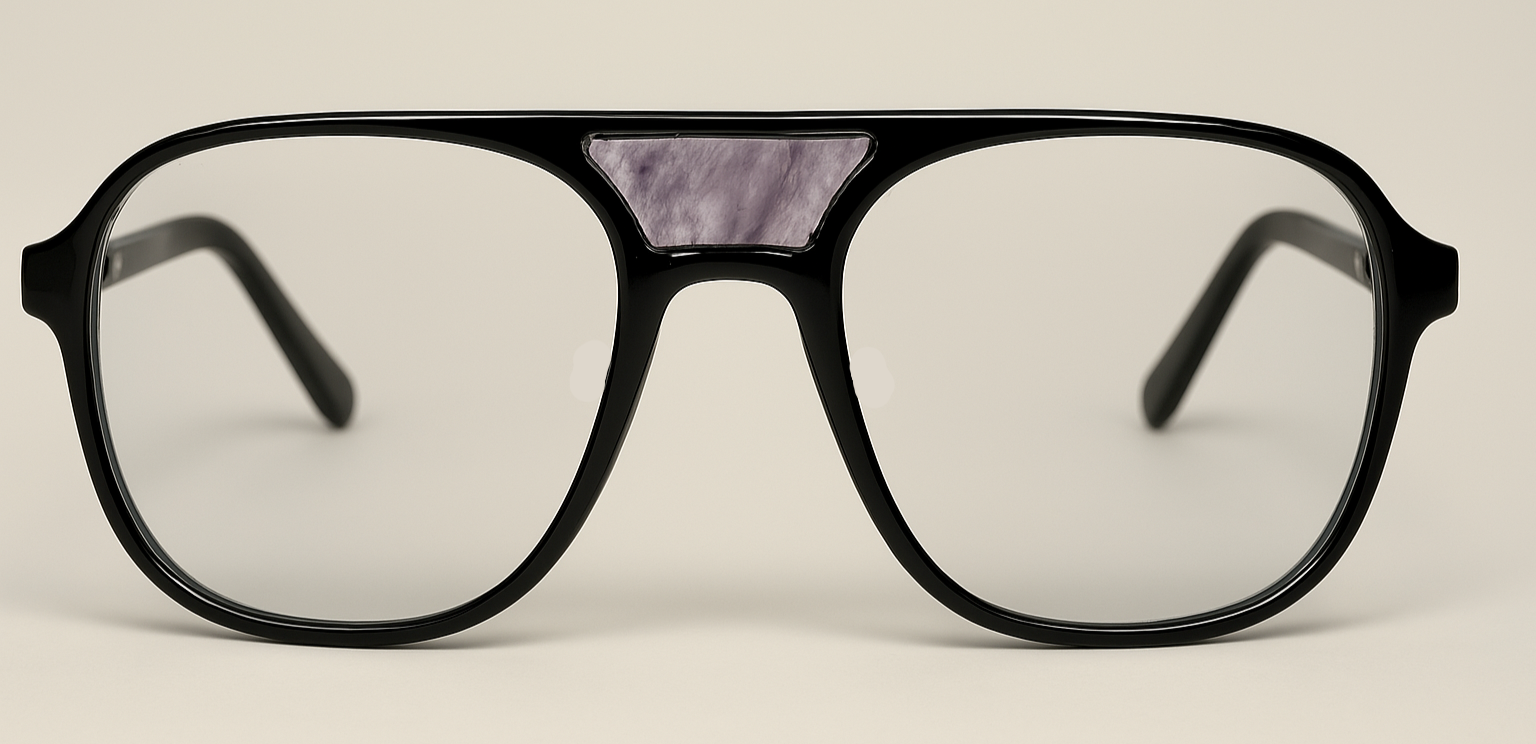 The "Karma" frames are nested with unique natural crystals. Black frames with Blue light and UV blocker. Size: 54-16-145