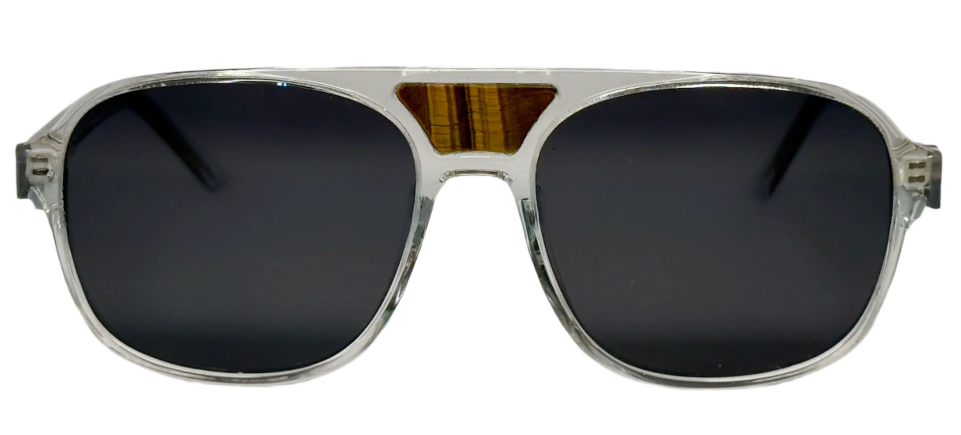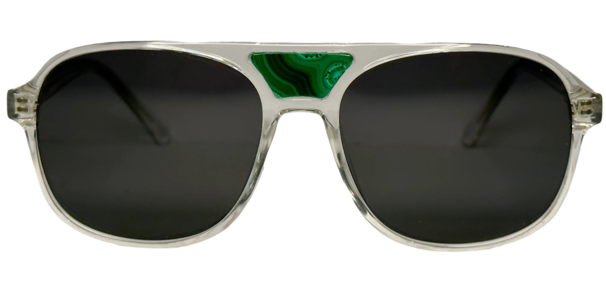 The "Karma" frames are nested with unique natural crystals. Clear frames with Polarized sunglass lenses. Size: 54-16-145