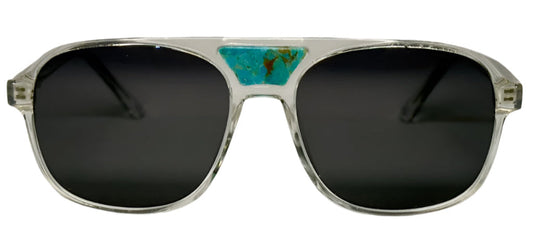 The "Karma" frames are nested with unique natural crystals. Clear frames with Polarized sunglass lenses. Size: 54-16-145